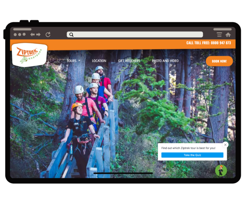 Match message type to intent. A weather closure needs a Status Update. A limited-time deal needs a Call to Action. A high-traffic product page with a complex range of options might benefit from a Prompt to Chat directing visitors into your AI Chatbot — or a link to your Recommend Quiz, as Ziptrek Ecotours does.
