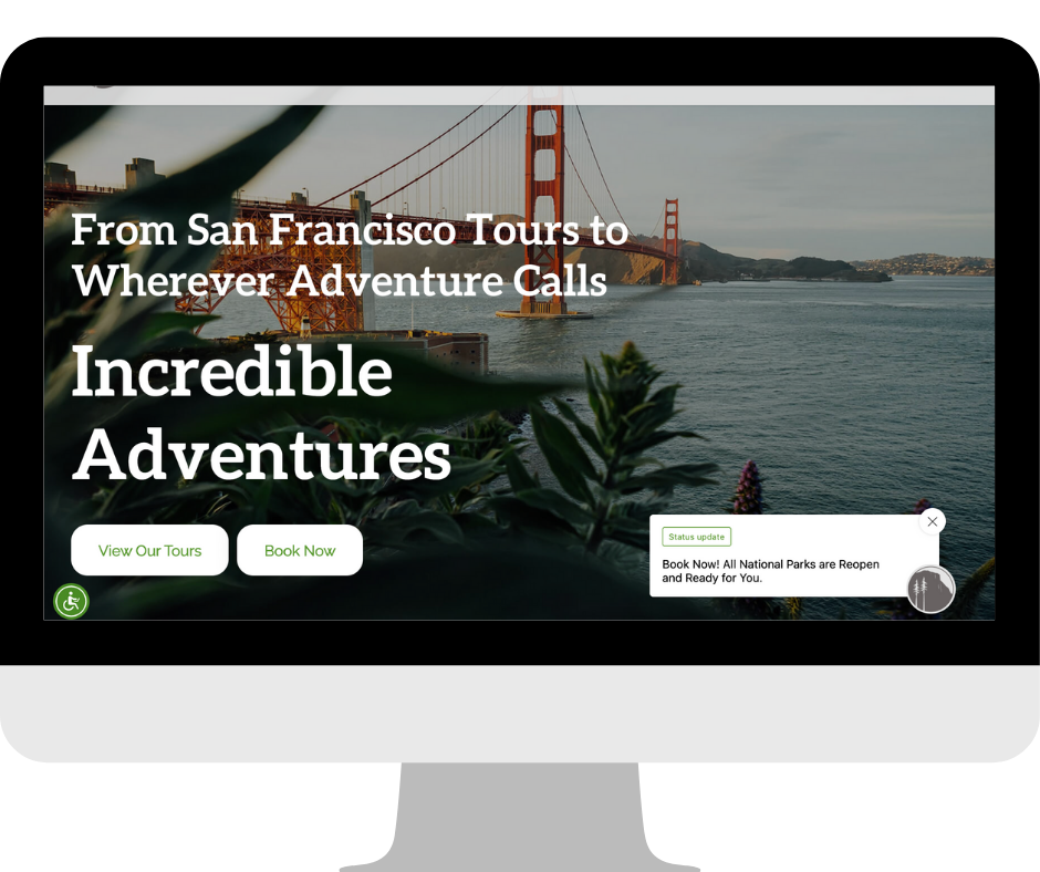 Create urgency around time-sensitive offers. Tourism deals are rarely evergreen — they're seasonal, weather-dependent, or tied to specific availability windows. A Call to Action announcement — "10% off if you book in the next 24 hours" or "Only 3 spots left for this Saturday" — converts that urgency into action before the visitor clicks away.