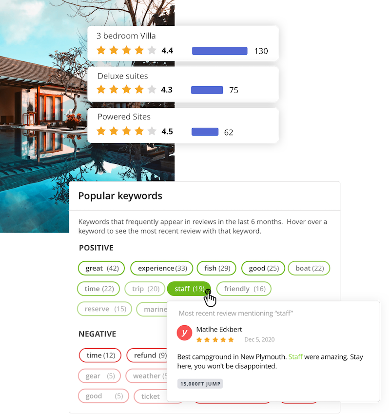 Seasonal trends. Understand how guest satisfaction varies across your operating season to inform staffing, pricing, and product decisions.