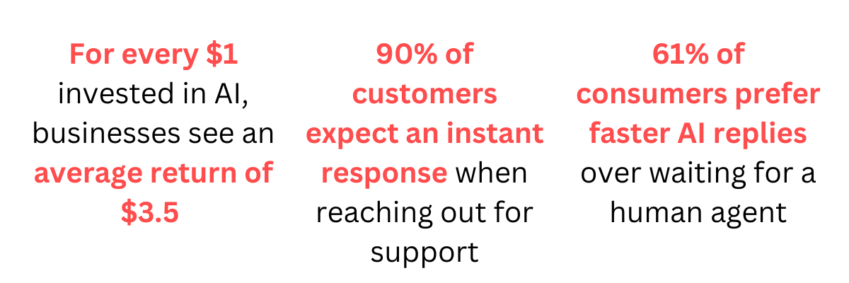 - KPMG: For every $1 invested in AI, businesses see an average return of $3.5, with 5% of companies reporting a return of $8 (Plivo AI Customer Service Statistics).